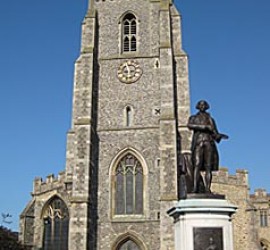 St. Peter’s and Gainsborough’s Statue are situated in the centre of Sudbury. St. Peter’s is a redundant church which is used throughout the year to put on entertainment such as a venue for concerts, exhibitions, farmers and craft markets. On the north side of the church is a fountain and horse trough which is mentioned in Dodie Smith’s 101 Dalmatians. On the Market Hill is a statue of Thomas Gainsborough which was unveiled in 1913.